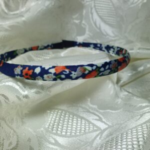 Dark Blue Hairband with Bright Flowers