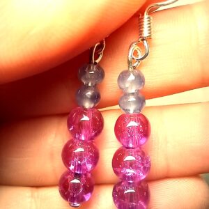 With these purple dangle earrings. Each earring features five purple beads exudes charm, making these earrings perfect for both casual outings and special occasions. Lightweight and comfortable to wear, they effortlessly complement any outfit, whether you’re dressing up for a night out or adding a pop of colour to your everyday look. Handmade