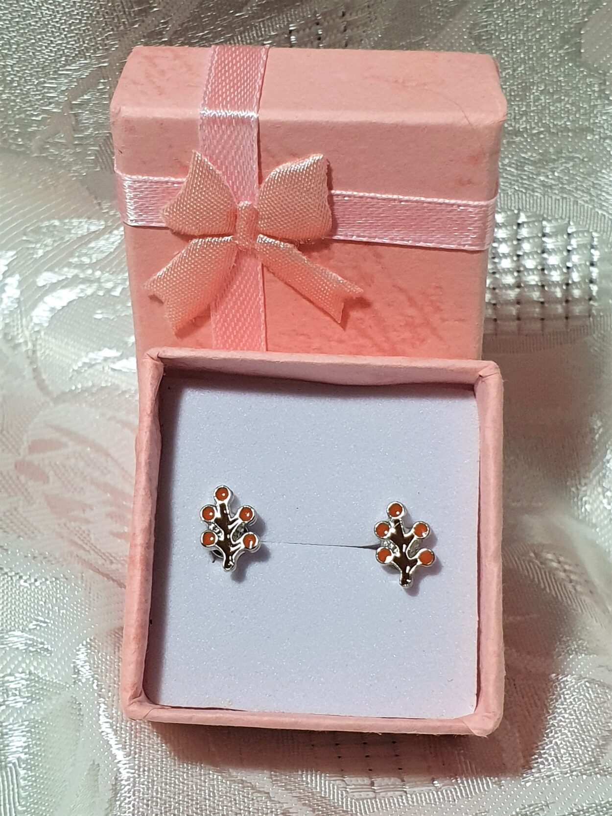 Cute cherry blossom enamel design, delicate style, stainless steel stud earrings.
