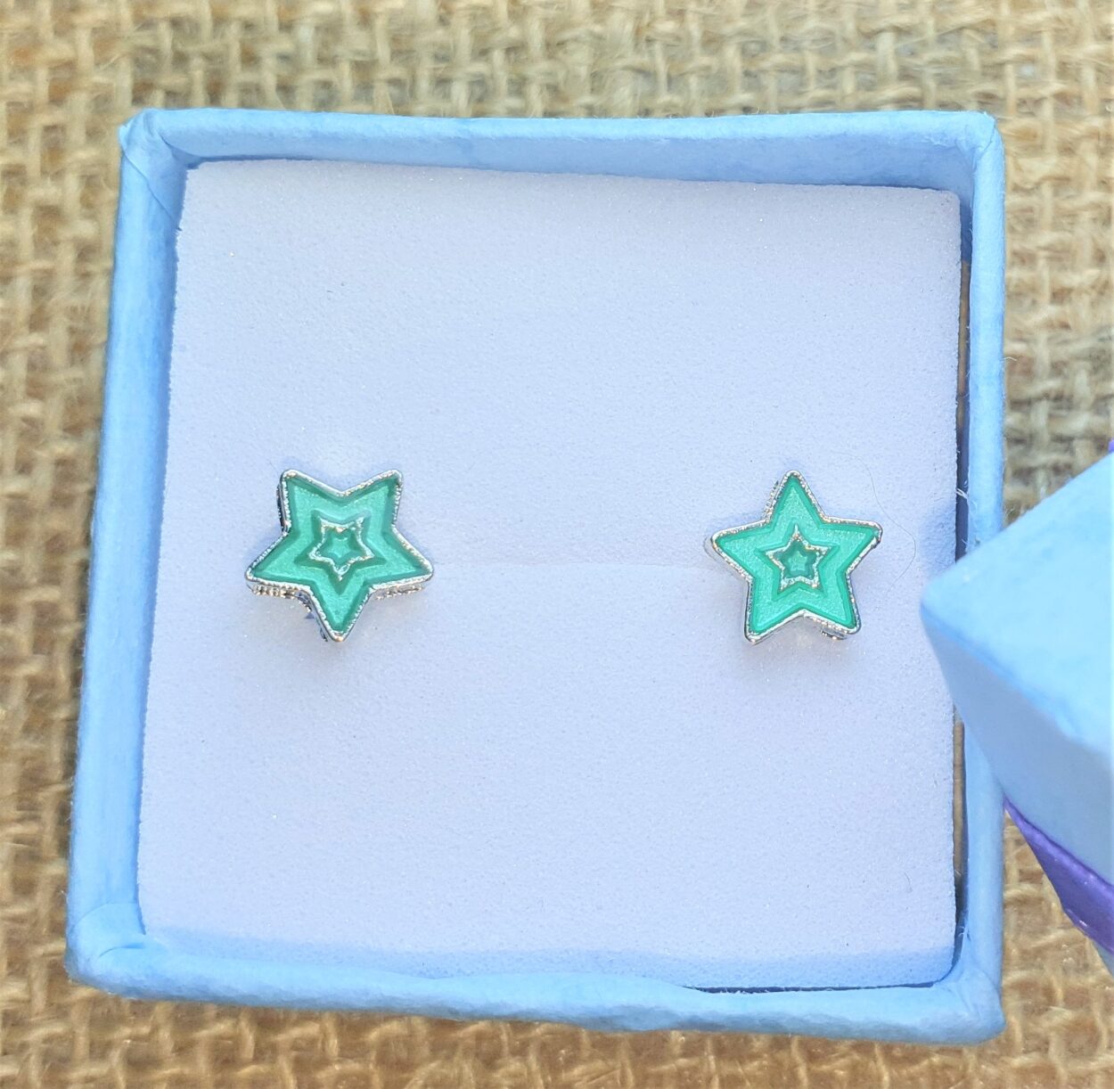 Cute Enamel Green Star Design, Stainless Steel Stud Earrings