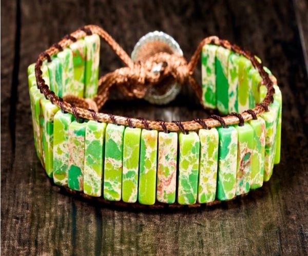 Green accent square stone bead handmade wrap bracelet