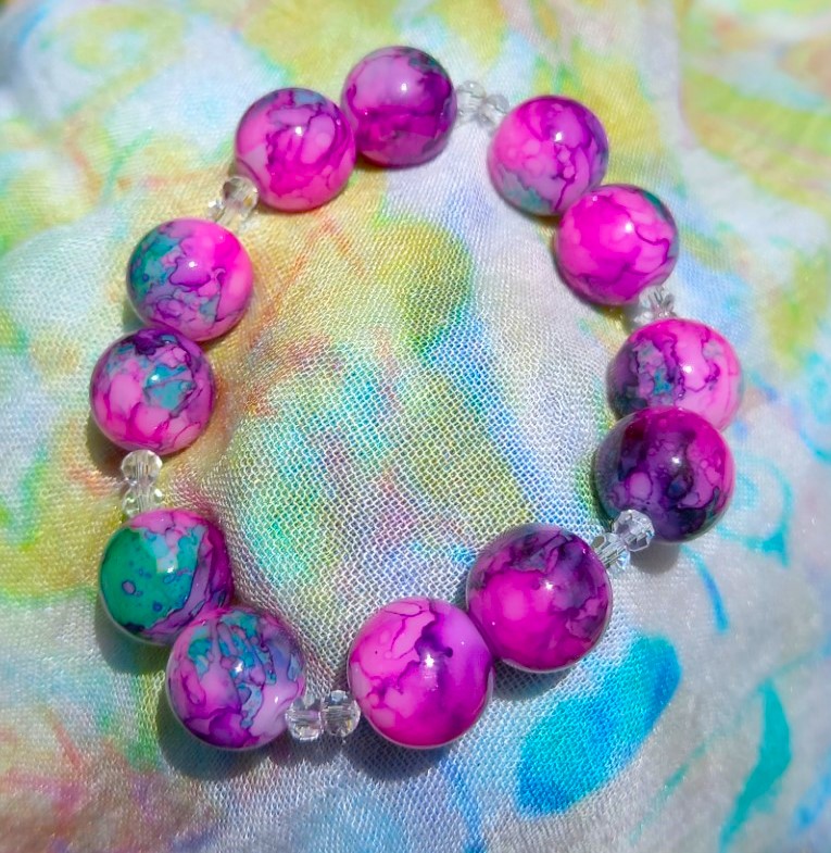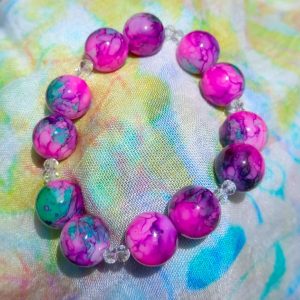 Add a pop of color to your wrist with this stunning 10mm pink and green bead bracelet! Handcrafted with love, this vibrant piece is perfect for adding a touch of fun to any outfit. The combination of pink and green beads creates a playful and eye-catching design that is sure to be a conversation starter. Whether you wear it alone or stack it with other bracelets, this bracelet is a must-have accessory for any jewelry lover. Handcrafted with 6mm bead 18cm gel elastic.