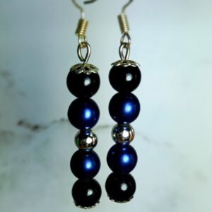 Shimmering Metallic Blue & Classic Black Glass Bead Earrings