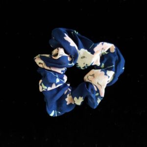 Big Navy Blue Scrunchie with White Flowers
