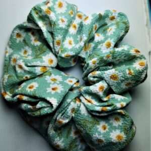 Big Green with White Flowers Scrunchie