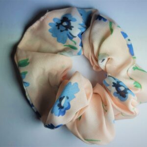 Big Light Pink Scrunchie with Blue Flowers